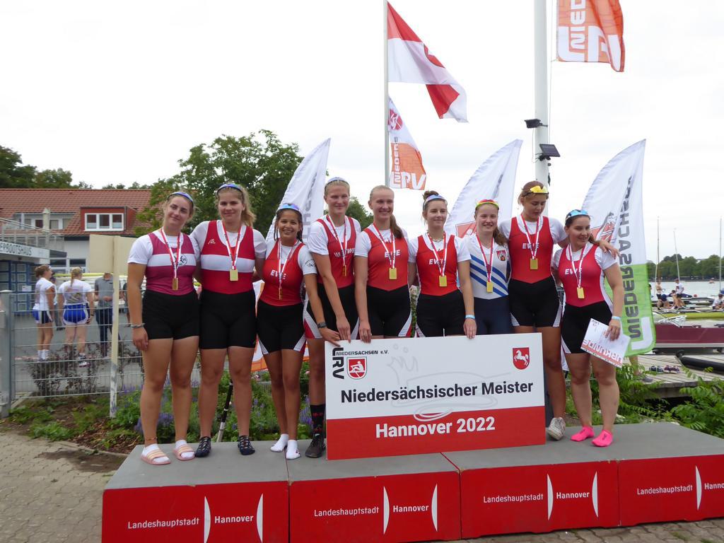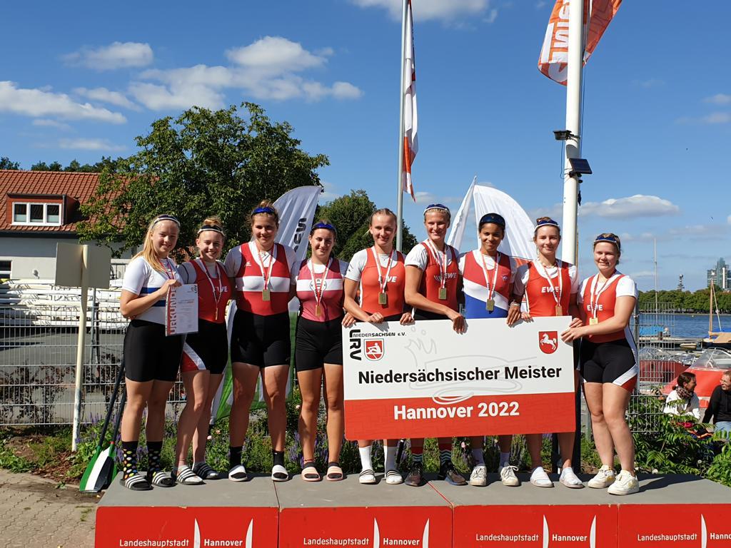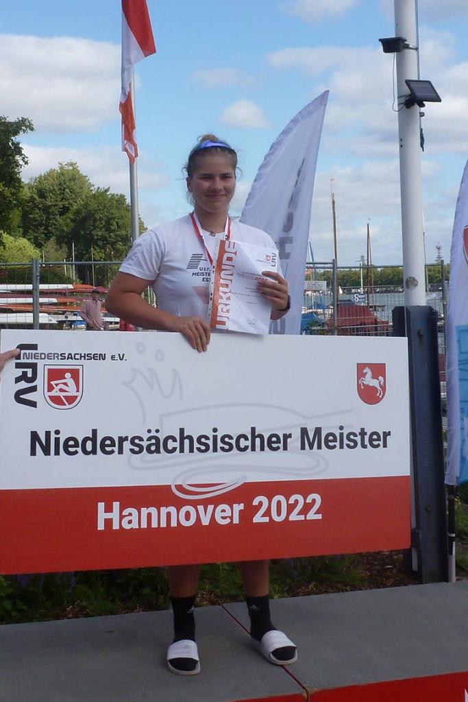 An beiden Tagen erzielten Charlotte Burgdorf und Johanna-Maria Jagnow Siege im Juniorinnen-Achter in niedersächsischer Renngemeinschaft, u.a. mit dem Team Nord-West. Es zeigte sich, dass Charlotte die 1.000 Meter-Strecke deutlich besser als die Sprintstrecke liegt. Dies stellte sie am Sonntag unter Beweis, wo sie souverän den Titel im A-Juniorinnen-Einer gewann.