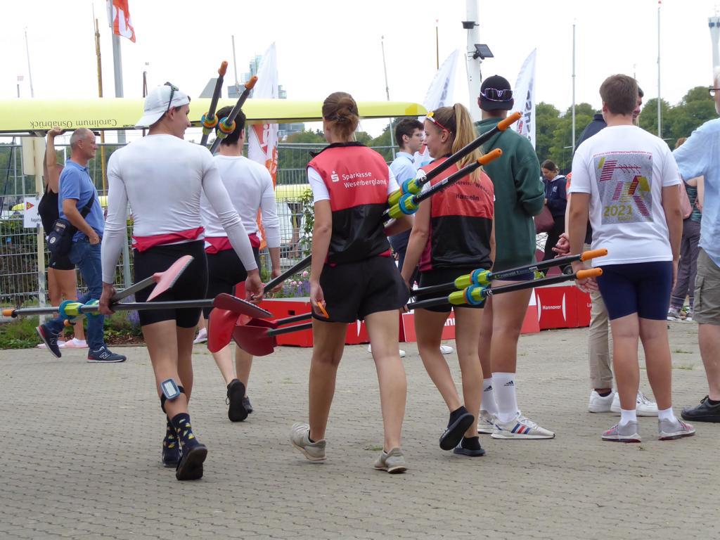 Besonders stark präsentierten sich die A-Junioren. Fabio Geisler, der nach seinem Auslandsjahr in Kanada – wo er ebenfalls erfolgreich gerudert ist – wieder zurück ist, führte die Junioren in verschiedenen Besetzungen zu Siegen im Doppelvierer, Vierer mit Steuermann und Achter. Besonders freuten sich Vadym Ponomarov und Andrii Kolesnichenko, die sich für einen Verbleib in Hameln entschieden haben, und nun für den RVW an den Start gehen.