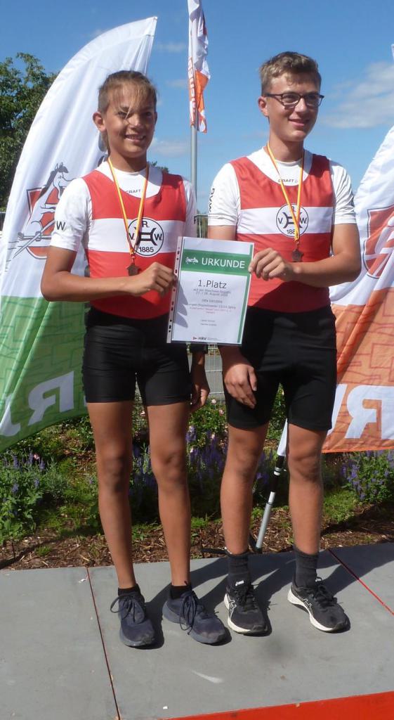 Der bereits erfahrenere Lasse Günter gewann am Sonntag die 1.000 Meter im Einer sowie mit seinem Partner Hannes Esders im Doppelzweier der 14 jährigen Jungen.Â