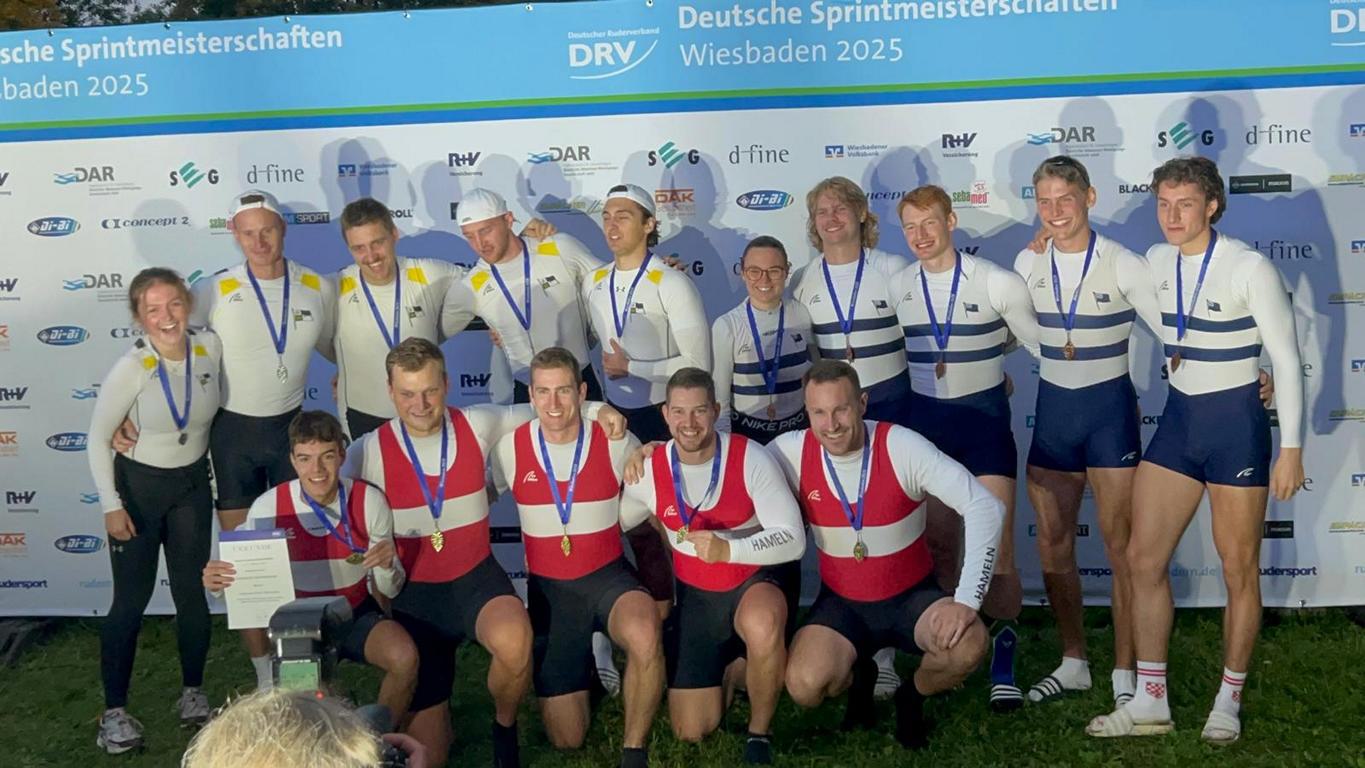 Nach 2023 ging der Titel im Vierer mit Steuerperson erneut eindrucksvoll nach Hameln. In leicht umbesetzter Mannschaft im Vergleich zu 2024 und dem letztjährigen vierten Platz bei der DSM konnten sich Florian Wissel, Thore Wessel, Niklas Hölscher, Maximilian Gümpel und Stm. Noel Streuber auf der 350 Meter langen Sprintstrecke schon früh an die Spitze setzen. Gegen starke Konkurrenz aus Osnabrück, Krefeld, Mühlheim und Mainz zeigte das Hamelner Boot ein technisch sauberes, kraftvolles Rennen und ließ die Gegner im Finale keine Chance. Mit einer halben Bootslänge Vorsprung überquerten sie als Erste die Ziellinie und sicherten sich verdient den Deutschen Sprintmeistertitel 2025.