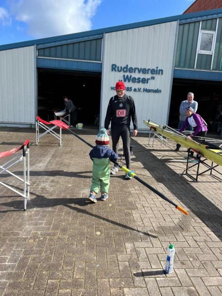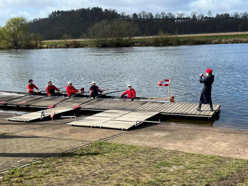 Nach dem offiziellen Teil hielt es niemanden mehr an Land: Nach einem dreifachen „Hipp, hipp, hurra!“ wurden die Boote zu Wasser gelassen und zahlreiche Ruderinnen und Ruderer nutzten die Gelegenheit, die neue Saison direkt auf der Weser zu eröffnen.