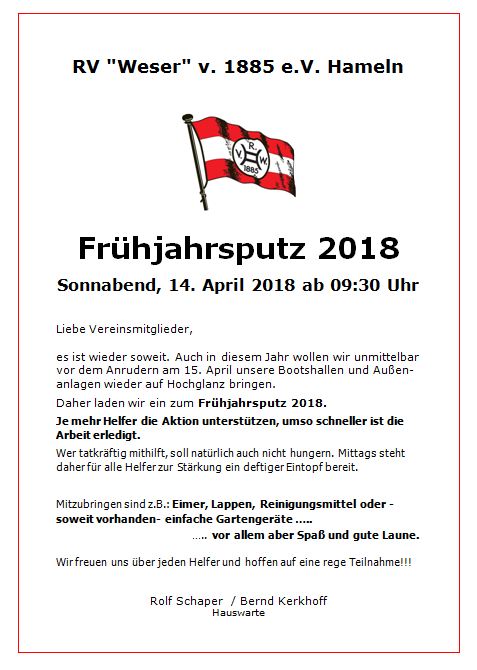 Frühjahrsputz am 14. April 2018 unserer Vereinsanlage